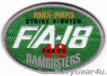 VFA-195 DAMBUSTERS 1985-2025年F/A-18ホーネット運用(VFA化)40周年記念部隊パッチ(ベルクロ有無)