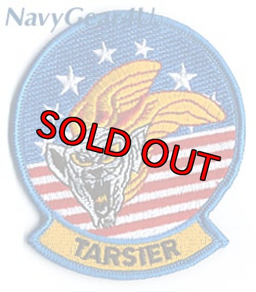 F-14Aトムキャット飛行隊として活躍、"TARSIERS”から飛行隊名称を変更したVF-33"スターファイターズ"のショルダーマスコットパッチ"TARSIER"。同隊の旧インシグニアである羽を持つメガネザルがデザインされたパッチ。ベースはトムキャットマスコットパッチを基調にしている。当店デッドストック品。