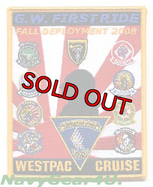 CVW-5(第5空母航空団/NF)が空母CV-63キティホークに替わって2008年8月に搭載されたCVN-73ジョージ・ワシントンとの最初の西太平洋クルーズを記念したパッチ"G.W.FIRST RIDE FALL DEPLOYMENT 2008"。パッチはCVW-5のインシグニアの上にG.W.のシルエットが旭日ともにデザイン。CVW-5各飛行隊インシグニアも刺繍。