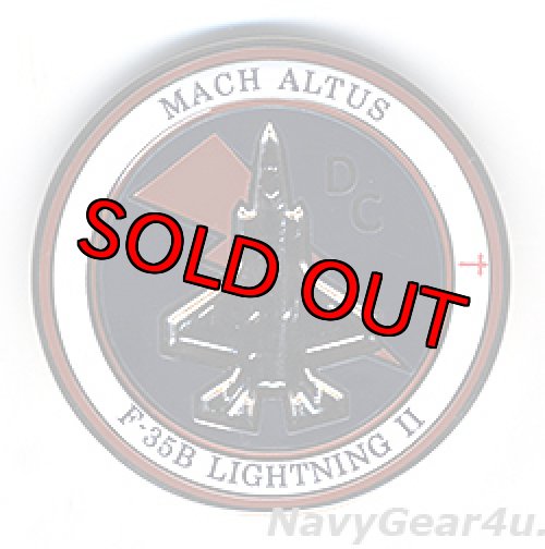 2017年10月1日付けでF/A-18Cホーネットの運用を終了、このほどF-35Bを受領した米海兵隊VMFA-122"ザ・フライング・レザーネックス"(DC)の最新F-35Bオフィシャルチャレンジコイン。コインはフロントがF-35Bの上面形とライトニングがデザイン。縁には部隊名と、同隊のクルーが1959年にアンティーク店で見つけたクルーセイダーの置物に命名した「MACH ALTUS」の名前がプリント。バックは旧海兵隊章の部隊インシグニアに部隊名がデザイン。