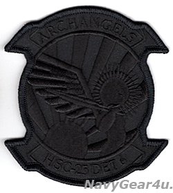グアムのアンダーセンAFBに本隊のあるMH-60S飛行隊HSC-25"アイランドナイツ"(RB)のNAF厚木をショアべースとする分遣隊DET-6"アークエンジェルズ"の部隊パッチ(ブラックアウトバージョン)。全てブラックで再現した部隊パッチで、旭日をバックにサーベルを持った大天使(アークエンジェル)がブラックデザイン、同隊はマルチミッションヘリコプターMH-60Sナイトホークを運用する部隊。最新DET-6Aチームのパッチ。