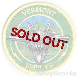 バーモント州バーリントンANGBをホームベースとするF-35AライトニングII飛行隊バーモントANG 158FW/134FS "ザ・グリーンマウンテン・ボーイズ"のF-35Aショルダーパッチ。パッチは部隊名に因んだ緑の山々を飛ぶF-35Aと「VERMONT,134TH FS」の文字がデザイン。