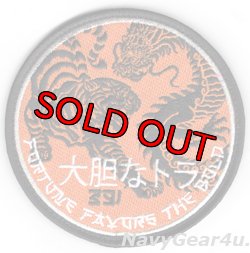 アイダホ州マウンテンホームAFBをホームベースとするF-15Eストライクイーグル飛行隊366FW/391FS "ボールドタイガース"が、現在進む18WGのF-15C順次退役に伴い、戦力増強のため3か月ごとに飛行隊の巡回配備を実施、同隊は4月から嘉手納へ展開している"391 Expeditionary Fighter Squadron" 。パッチはその展開記念パッチで、同隊をイメージしたタイガーが中国を意味するドラゴンと対峙しているデザイン。部隊名に因んで日本語で「大胆なトラ」の文字。最新の1枚。