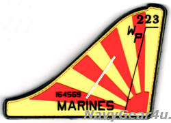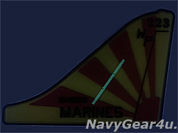 MCASチェリーポイントをホームベースとする米海兵隊最後のAV-8BハリアーII/II+飛行隊VMA-223"ブルドッグス"の"WL223"PVC垂直尾翼パッチ。パッチは同隊のショーバード"WL223"の垂直尾翼を再現したデザインで、編隊灯が蓄光で光る仕様。最新の1枚。PVCラバー製パッチ。