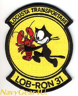 米海軍最後のF-14Dスーパートムキャット飛行隊であったVF-31"トムキャッターズ"のジョークパッチ"LOB-RON31"。ロブスターを運ぶフィリックスがデザインされており、上のタブには"LOCUSTA TRANSPORTARE"(ロブスターの運び屋)、下のタブには"LOB-RON31(ロブスタースコードコロン)の文字が刺繍。