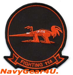 米海軍のF-14Aトムキャット飛行隊として活躍したVF-114"アードバークス"の部隊パッチ(Ver.2)。パッチは部隊カラーのオレンジと黒を基調にZot(ゾット)と呼ばれる同隊のアリクイのキャラクターがデザイン。Zotの胴体に「VF-114」の文字が刺繍されたVer.2。飛行隊はCVW-11(NH)に所属、VF-213とともに活躍した。映画『トップガン』時代に人気を誇った飛行隊。部隊は1993年4月30日付で解散。