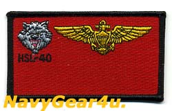 NSメイポートをホームベースに活躍したSH-60B飛行隊HSL-40"エアーウルブス"(現HSM-40)のパイロット用ネームタグ。実際にパイロット資格を持っていないファンやオフィサーのファミリー、情報士官など用にウイングマーク部分にシーホークをデザイン。部隊カラーの赤を基調に部隊名と部隊インシグニアがワンポイントで刺繍。HSL当時の貴重な部隊パッチ。当店デッドストック品。