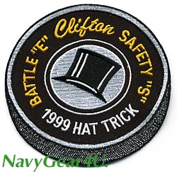 米海軍のF-14Aトムキャット飛行隊として活躍したVF-14"トップハッターズ"が、1999年にバトルEアワード、クリフトンアワード、セーフティーSアワードのビッグタイトル3賞を全て受賞した際の記念パッチ"1999 HAT TRICK"。パッチはアイスホッケーのパックのデザインで部隊インシグニアのトップハットと各賞の名称「BATTLE "E"、Clifton、SAFETY "S"の文字が入れられた貴重なパッチ。当店デッドストック品。