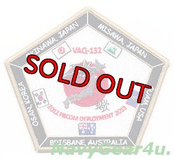 NASウィッドビーアイランドをホームベースとするCVWPの最新EA-18Gグラウラー飛行隊VAQ-132"スコーピオンズ"(NL)が、2012から3013年にかけてNAF三沢に展開、西太平洋方面のディプロイメントを行なったことを記念したパッチ"VAQ-132 2012 PACOM DEPLOYMENT 2013"。PACOMとはパシフィックコマンドの略で、パッチは日の丸に日本地図と三沢展開中に展開した各国の国旗と地名がデザイン。コールサインに使っている「蠍」(サソリ/ICAOコードでは5文字制限のためSASRIと表記)の漢字も刺繍。同隊は現在三沢へ2度目のディプロイメント中。
