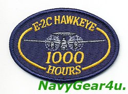 E-2Cホークアイおよび、NP/2000でのフライト1000時間達成記念パッチ。オーバルタイプで、達成飛行時間とE-2Cの正面形をデザイン。プロペラが回転しているニューデザイン。全米海軍/VAW飛行隊のジャケットに。