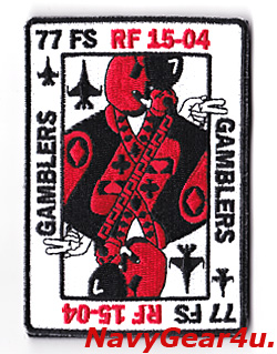 米空軍のF-16C飛行隊20FW/77FS(SW)"ギャンブラーズ"が2015年8月にネリスAFBで開催された演習"レッドフラッグ20015-04"に参加したことを記念したパッチ。パッチは部隊名に因んでトランプのカード風のデザインでJHMCSを被ったパイロットがハンドサインを出しているデザイン。