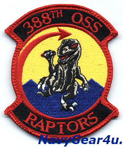 ユタ州ヒルAFBをホームベースとする388OG/388OSS"ラプターズ"の部隊パッチ。388FW傘下には4FSと421FSが配備されている。パッチは恐竜に赤い航跡がデザイン。