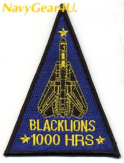 F-14A/Dを運用したトムキャット飛行隊VF-213"ブラックライオンズ"のショルダートライアングルパッチ"1000HRS"バージョン。