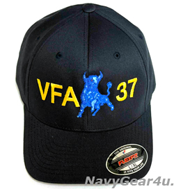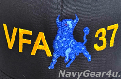 CVW-8(AJ)に所属するF/A-18Eスーパーホーネット飛行隊VFA-37"レイジンブルズ"の部隊オフィシャルボールキャップ(コマンドボールキャップ)。フロントにブルの部隊インシグニアと部隊名を刺繍。近年多くの飛行隊が採用するFLEX FITタイプのキャップを採用した現行キャップ。