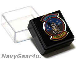 F-14トムキャットに夜間攻撃能力を付与するために機体を改修、AN/AAQ-14 LANTIRNポッド運用能力を付与されたトムキャットのマスコット・ピンバッジ。トムキャットの右肩にとまる夜鷹の眼から赤外線が照射されて地上の目標を照らしているデザイン。