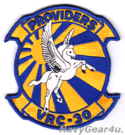 NASノースアイランドをホームベースとして活躍した米海軍大平洋方面のCOD(艦上輸送)飛行隊VRC-30"プロバイダーズ"(RW)の部隊パッチ。VRC-30本隊の部隊パッチで、傘下にDET-1〜DET-5までが所属している。パッチはブルーとイエローのライジングサンパターンにペガサスがデザイン。