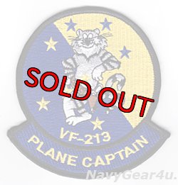 米海軍最後の2個F-14Dスーパートムキャット飛行隊の1つVF-213"ブラックライオンズ"ののPLANE CAPTAINトムキャットショルダーマスコットパッチ。部隊カラーのブルー/イエローの配色にトムキャット、スターがデザイン。当店デッドストック品。