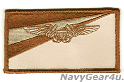 VAW-115に替わってCVW-5(NF)に編入された最新E-2Dホークアイ飛行隊VAW-125"タイガーテイルズ"のNFOネームタグ(デザートカラー)。デザートカラーのタグで、NFOウイングにストライプがデザイン。現行バージョン。中東方面へのディプロイメント時や、毎週決まった日などにデザートタンカラーのフライトスーツに着用するデザートカラー。