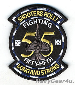 米空軍のF-16C飛行隊20FW/55FS(SW)"シューターズ"の部隊パッチ”SHOOTERS ROLL!,LONG AND STRONG"。パッチは5の目のダイス2つにF-16の上面がデザイン。
