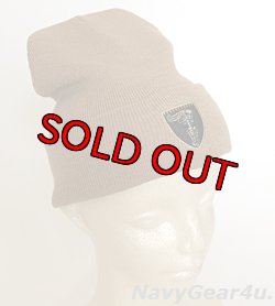 MCAS岩国のCVW-5に配備されるF/A-18Eスーパーホーネット飛行隊VFA-27 "ロイヤルメイセス"のコヨーテカラーのビーニーキャップ(ニットキャップ/ワッチキャップ)。フライトスーツやNWU着用時に使用する最新のカーキ(コヨーテ)カラー。今の季節に重宝する人気アイテム。エアショー見学やアウトドア、ウインタースポーツに最適。 同隊の部隊インシグニアがワンポイントで刺繍。ニット製キャップへの刺繍が入っているため一部刺繍の入り均等でない場合がございますが本来の品質となりますのでご了承ください。
