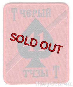 CVW-9(NG)に所属する米海軍の人気F/A-18Fスーパーホーネット飛行隊VFA-41"ブラックエーセス"のRED AIR部隊パッチ。このパッチは部隊内で敵機役を演じる際に、そのパイロットが使用する仮想敵部隊風にアレンジされた部隊パッチ。仮想敵国風に赤でアレンジされ、キリル文字でブラックエーセスの文字が刺繍。